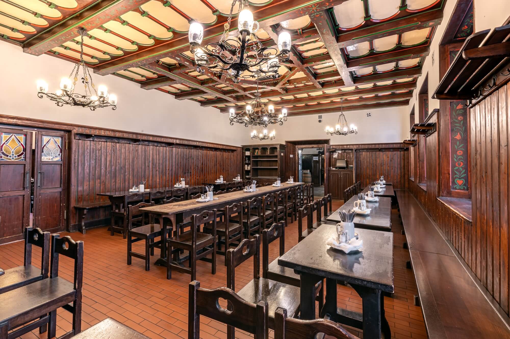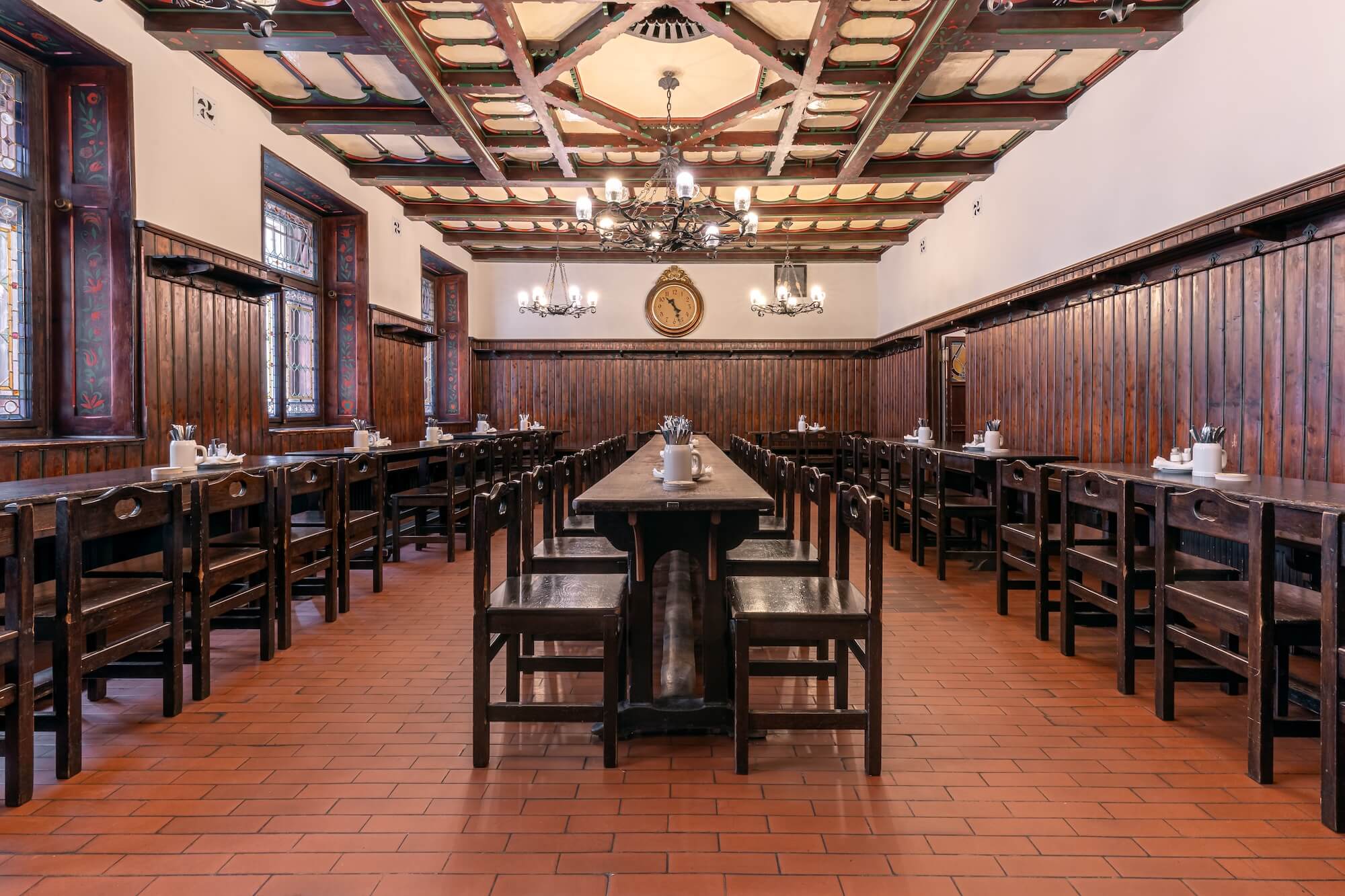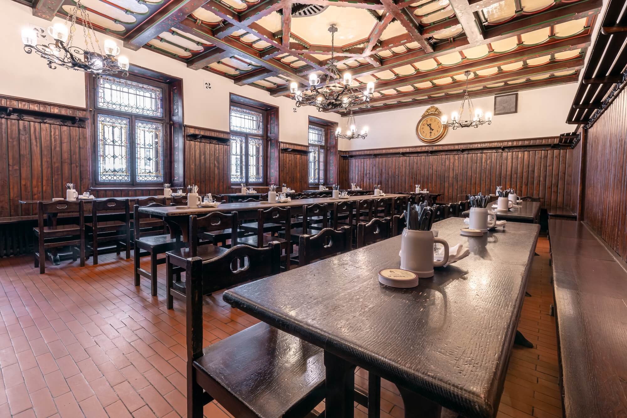 One of our restaurant’s most famous halls has panelled walls and a wooden cassette ceiling. The hall offers 76 seats.